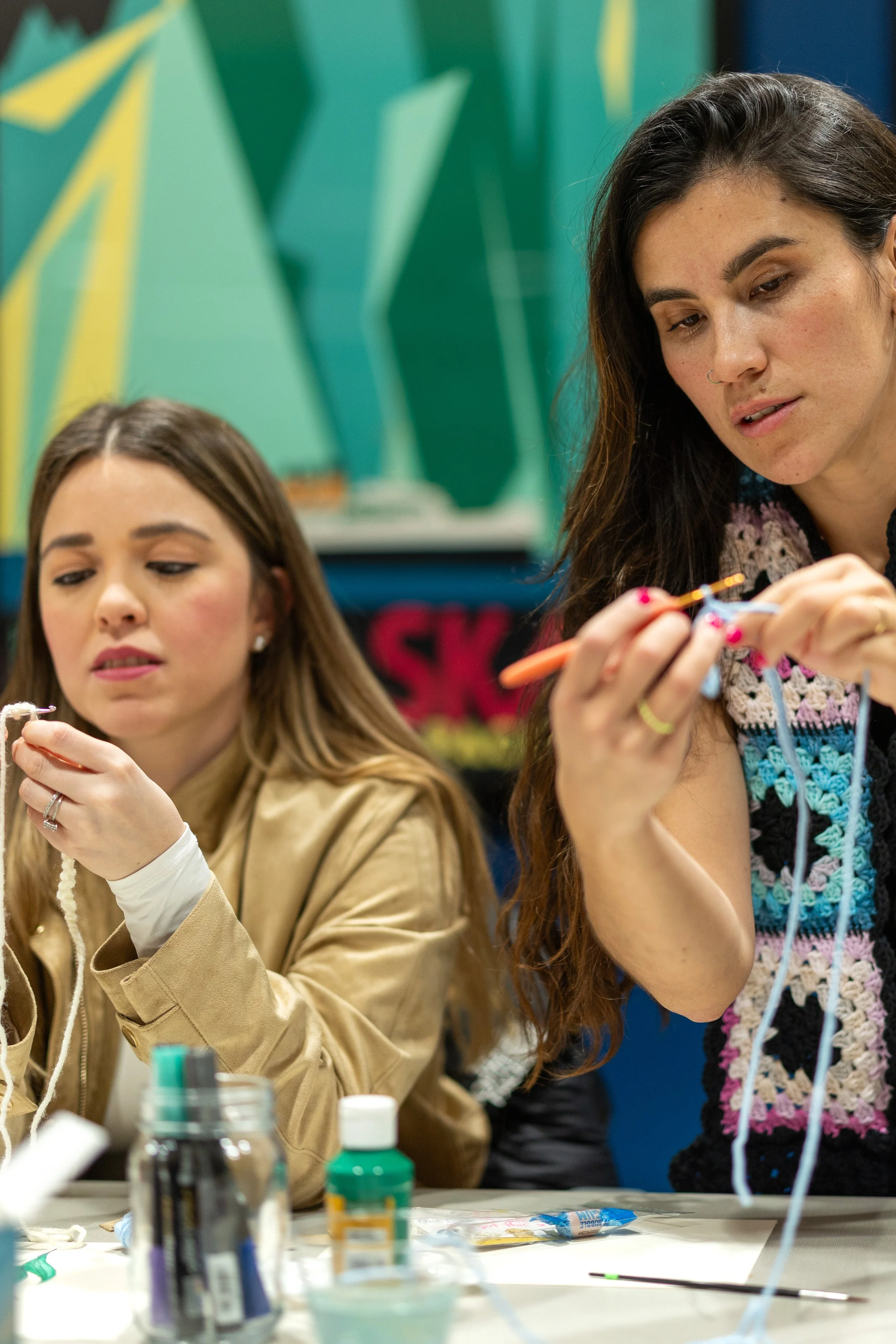 A creative experience where painting and crochet come together